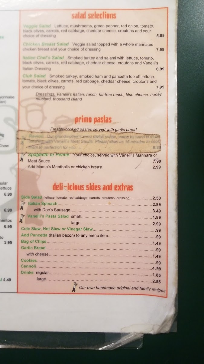 Vanelli's Deli Menu (Update 2025)